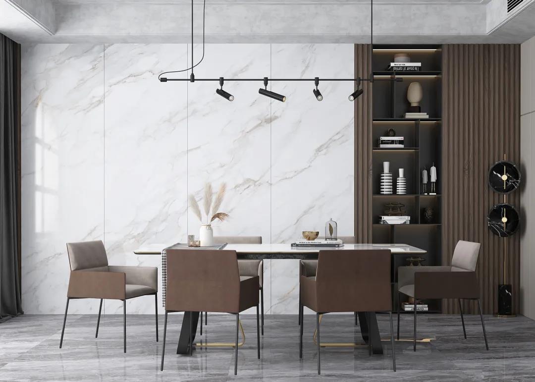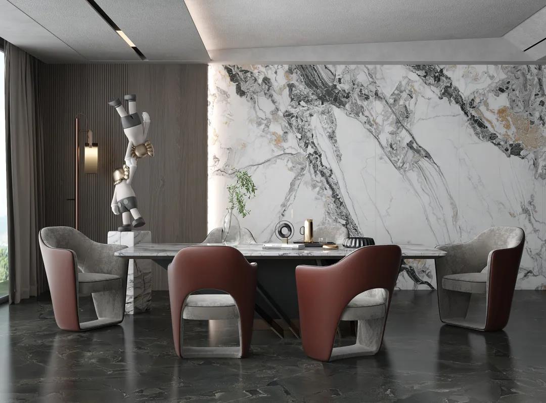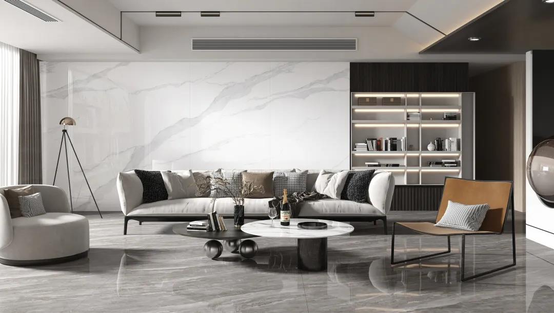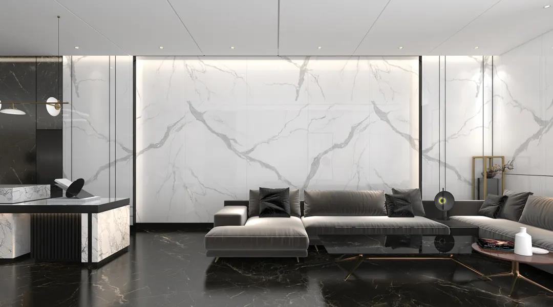 背景墻的裝飾材料種類多樣,有墻紙、硅藻泥、天然石材、皮革軟包,以及近幾年大熱的大理石瓷磚和巖板。大理石瓷磚、柔光磚和巖板加工簡單、造型多樣、鋪貼簡單、性價(jià)比高、后期打理方便,成為了家居背景墻的首選材料。