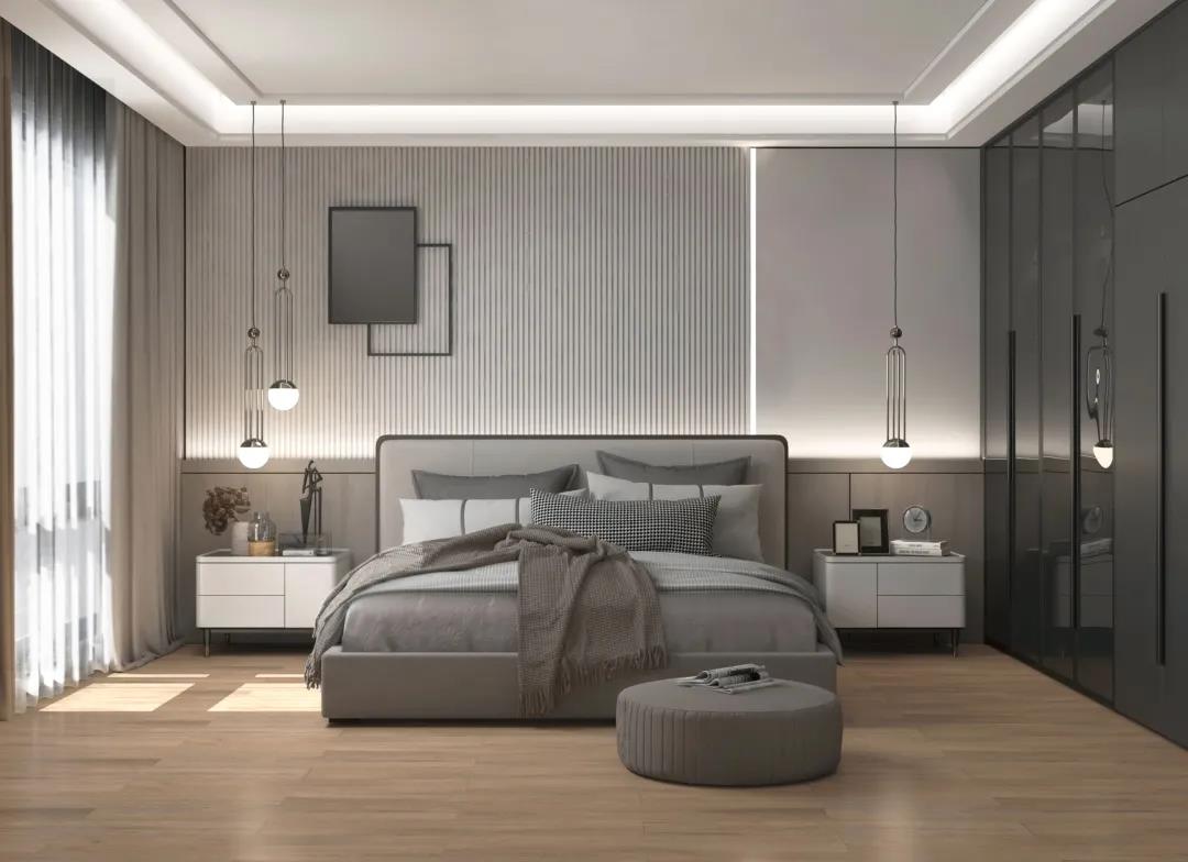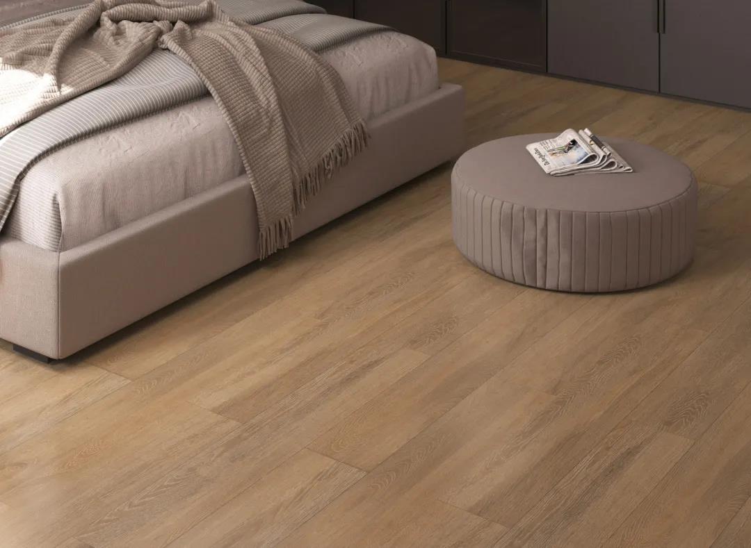 臥室采用溫馨的原木瓷磚鋪貼,觸覺視覺接近木地板,同時更好打理,