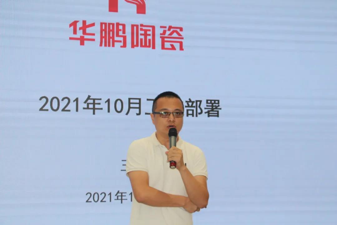 在聽取了各部門的工作匯報后,華鵬陶瓷常務總經理王瓏對第三季度的整體業績提升給予了充分的肯定,就各自區域2021年1-9月份銷售數據做了詳細總結分析。