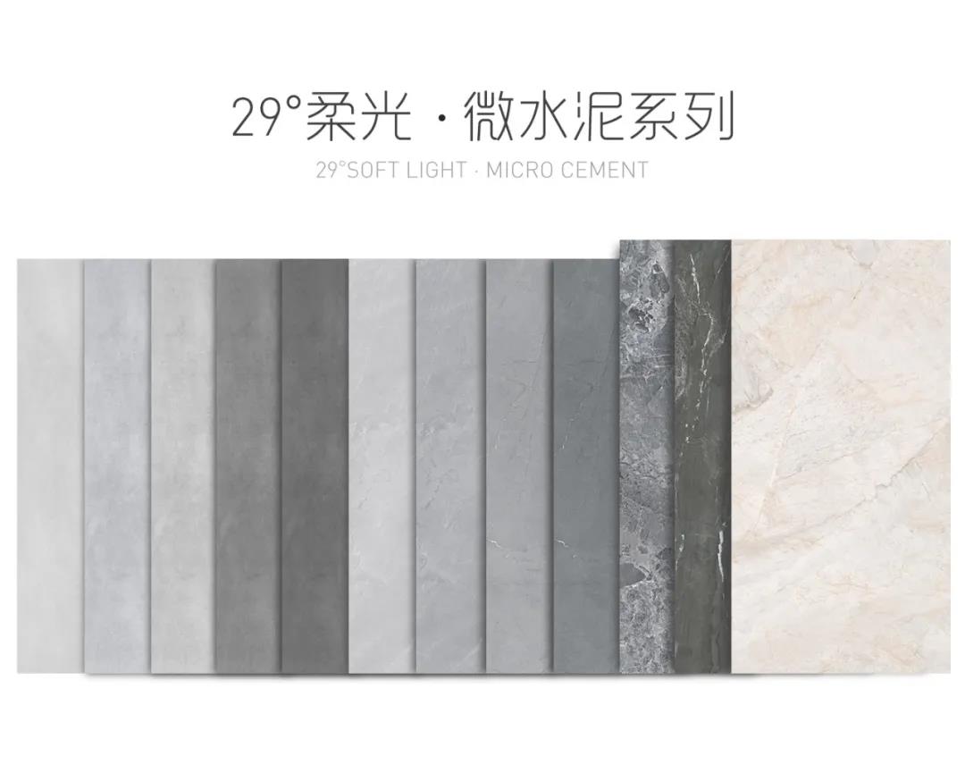 陶瓷十大品牌華鵬陶瓷副總經理胡志隆重揭幕29°柔光微水泥系列重磅產品,華鵬陶瓷原創設計,采用模具坯一壓成型,為更具質感的模具面而生,同時在磚面上添加了少量干粒+柔拋技術,視覺上增加微水泥瓷磚紋理質感,觸感上有凹凸模具面觸感,高度還原微水泥原貌。主打600*1200、750*1500兩個規格。以及新增900*1800、750*1500、600*1200、800*800常規系列新品。此次新品沿襲了29°柔光的自然光感,舒適、自然、細膩,是空間裝飾質感與品味的首選。