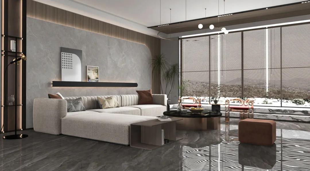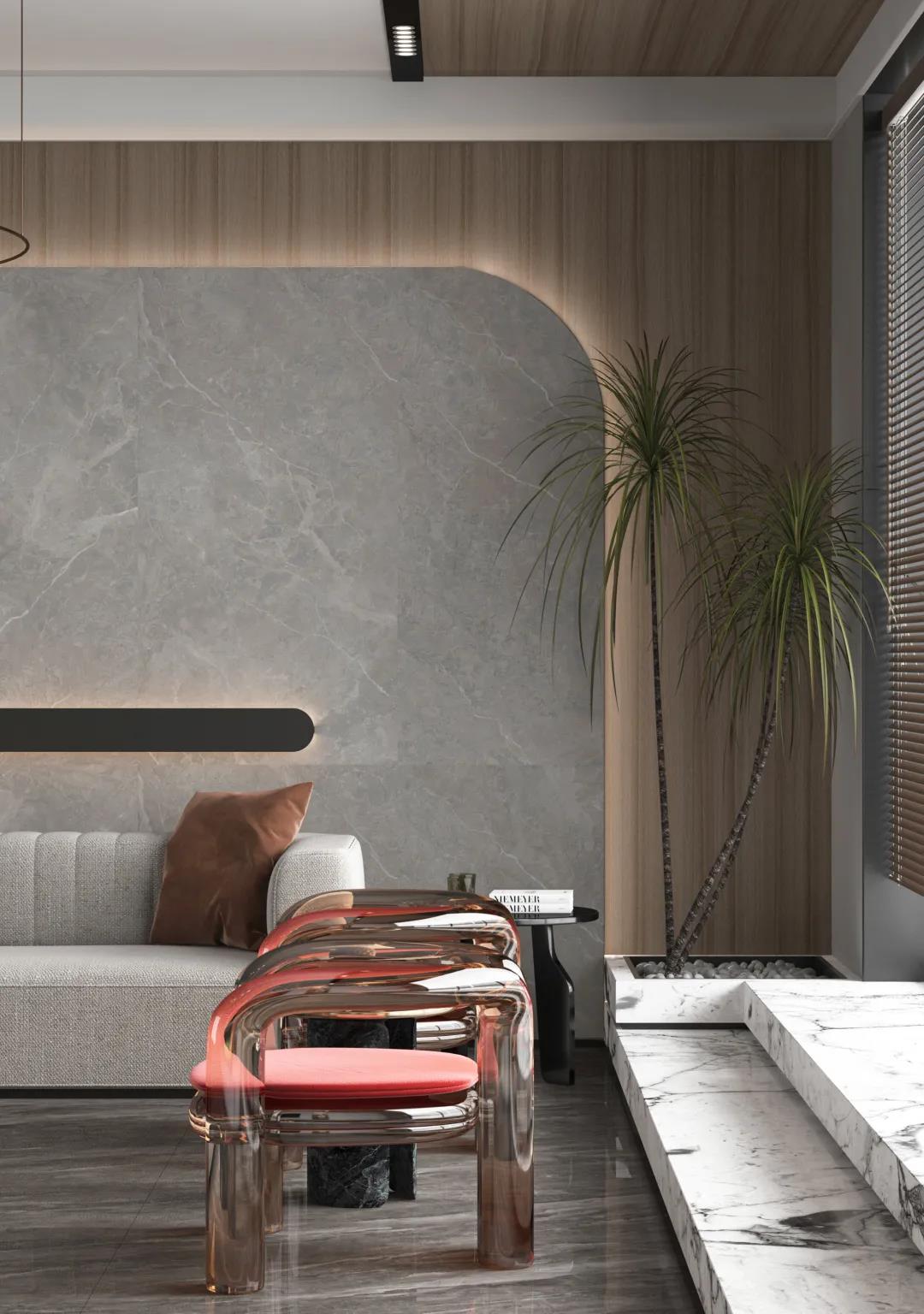 陶瓷十大品牌華鵬陶瓷不再局限于以單一材料售賣,而是以空間交付實現,打造所見即所得的用戶體驗。案例中,長城造型板或中空墻板代替傳統電視背景墻與華鵬產品結合,打造出一套完整的客廳方案。