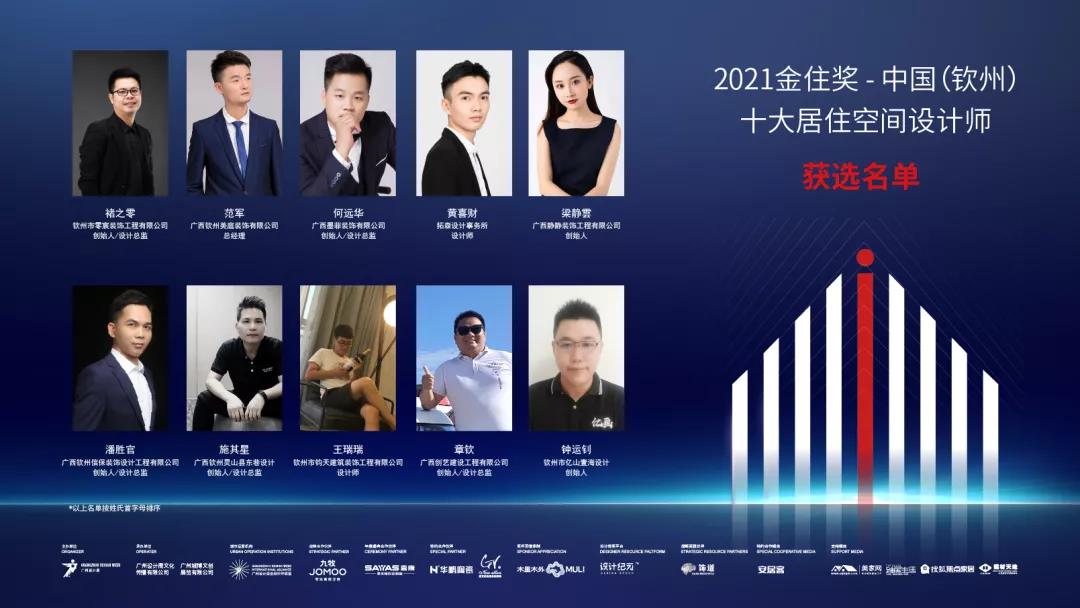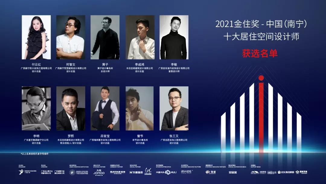 恭喜以上優(yōu)秀設計師榮獲“2021金住獎-中國(城市)十大居住空間設計師”,并獲得最終角逐“2021金住獎-中國百杰居住空間設計師”的資格!同時各位獲獎設計師也將參加于廣州設計周同期舉辦的『2021金獎-中國(城市)十大居住空間設計師』頒獎典禮!