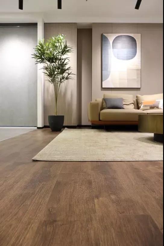 針對地面裝飾,除了瓷磚及巖板類產品外,還開發了便于安裝、質感細膩、腳感舒適的HPL石晶地板。