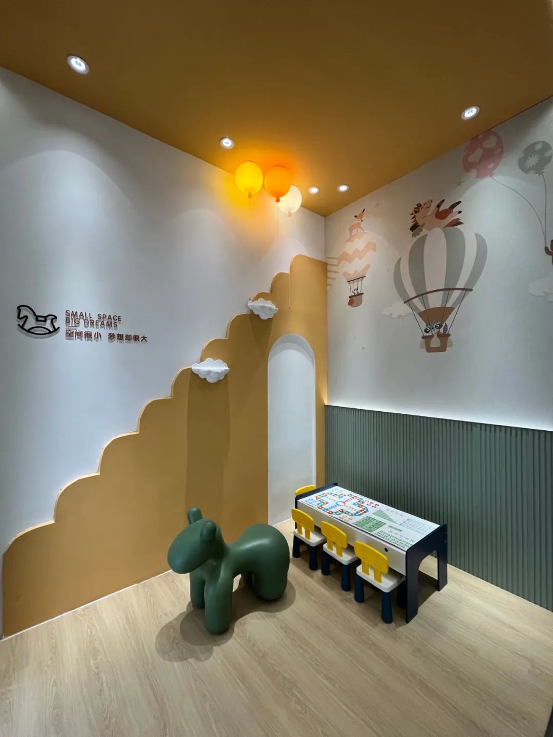兒童房的設計以童趣的張揚色彩及環保為落筆,HPL實晶地板與硅藻泥科技墻板的結合,釋放了空間的視覺感,尺度舒適,對材料進行重新分割組合,觸目所及之處皆趣味,并強化空間品質。