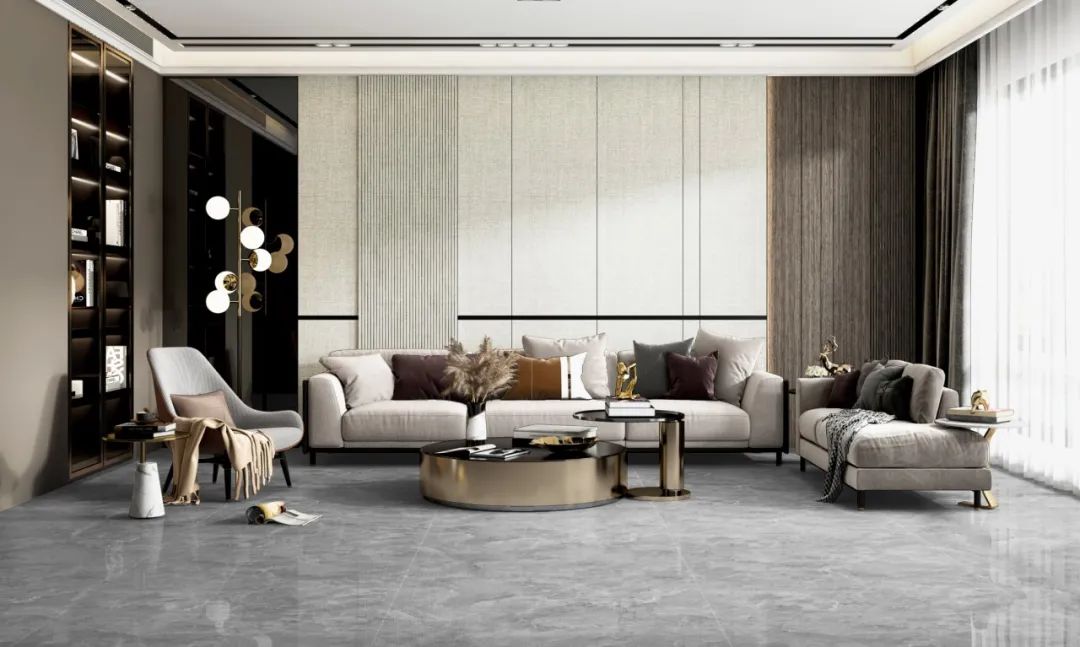 餐廳的設(shè)計(jì)在細(xì)節(jié)上精雕細(xì)琢,墻面采用一片到頂?shù)拇笠?guī)格瓷磚,仿若高山開(kāi)鑿的天然石,溫潤(rùn)的肌理經(jīng)大自然細(xì)膩的勾勒、描繪,如生命般律動(dòng)。每一處都倍顯溫暖與靈動(dòng)。搭配灰色餐桌,時(shí)尚且美觀,給人滿滿的溫馨感。