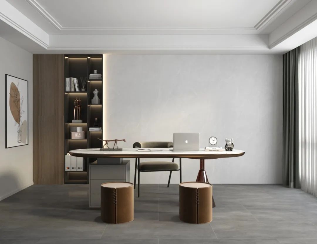 書(shū)房整個(gè)空間的場(chǎng)域氛圍給人的感覺(jué)舒適自然,背景墻采用了留白的手法,讓整體空間有了一種自由感,可以讓人享受沉靜式體驗(yàn)和辦公。