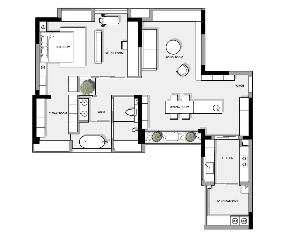 本案是120㎡的四居室,四居室爆改一居室,屋主是90后男青年,喜歡宅在家里看書、喝咖啡、逗貓,屋主喜歡質感系產品,對新時代的生活品質與個性的追求,使得不被傳統思想所束縛。