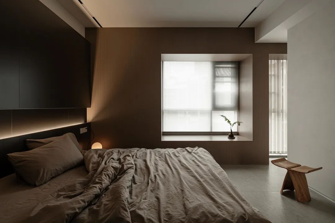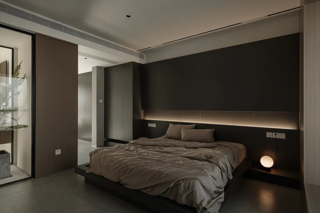 主臥的偏暗系設計,在身心層面提升舒適度及安全感,自然