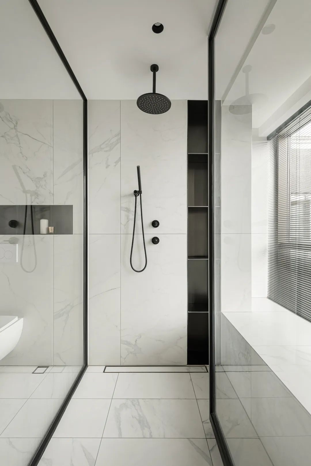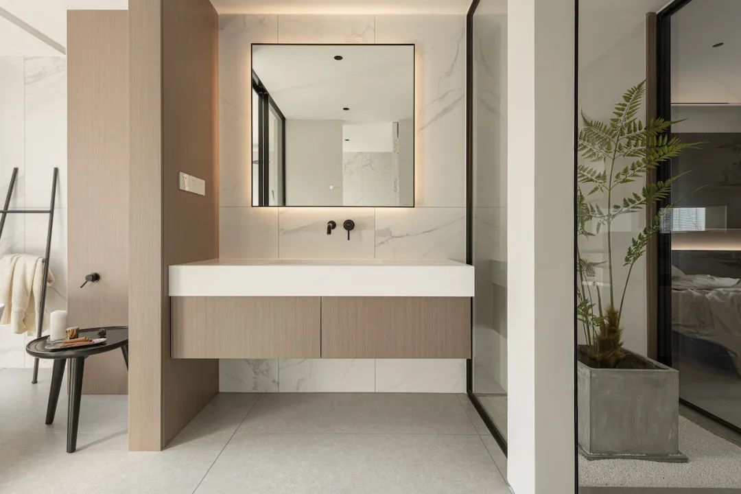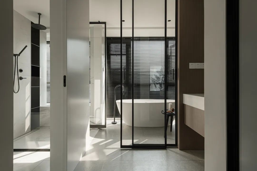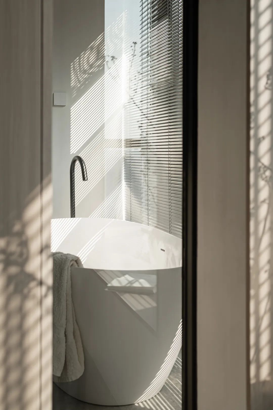 衛生間采用白色瓷磚通鋪,營造了精致與時尚的視覺感受,極簡的設計展現出了現代主義的高度理性,減少了陳設的構成元素,整個空間簡潔而素雅。