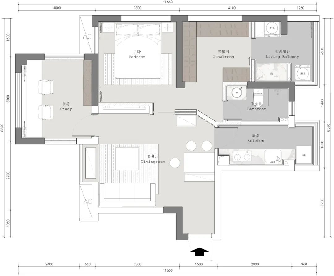 本期分享成都設計師易成文的作品《家思》,原始戶型是一個70㎡的緊湊三室一廳結構,每個空間都顯得擁擠局促,使用率低,實際的居住體驗并不理想。根據屋主的實際需求,在整體的空間格局上打造出一個公共空間流暢開闊,私人空間配套齊全的舒適兩人居,增加空間的質感和舒適度,讓小戶型實現多元化。