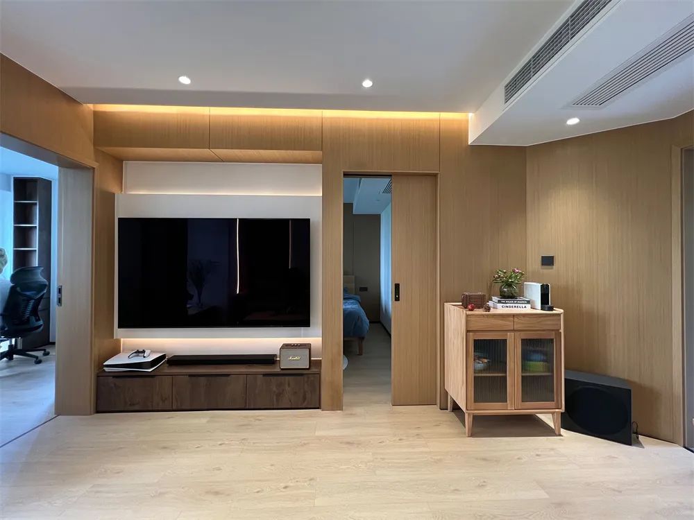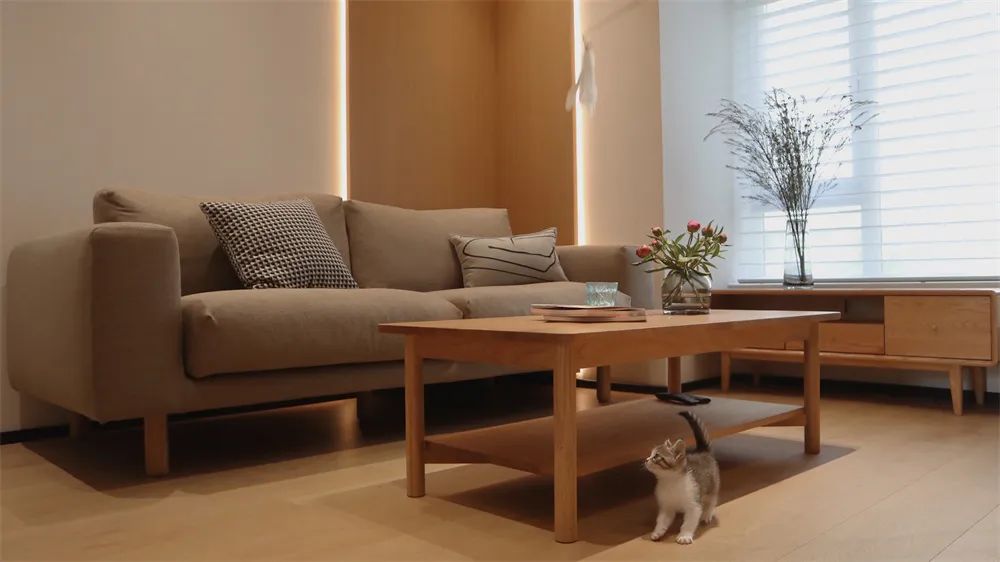整體設計采用極致簡約的原木風,溫馨而簡單,它沉浸在靜止和平靜中,他說,他們在設計創造出一個有該有的光,有該有的溫度的空間,將家“原本的樣子”交予屋主。