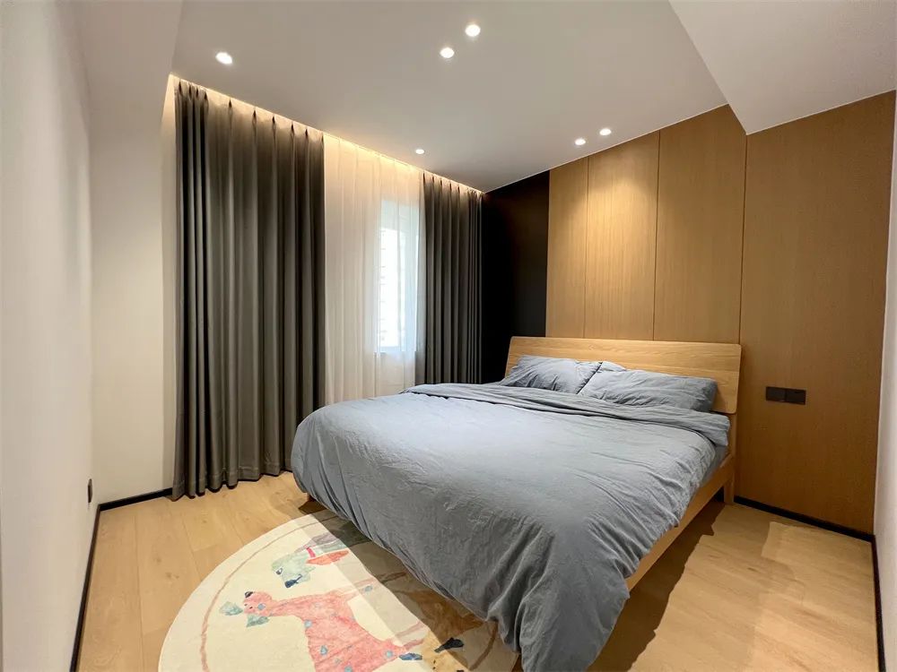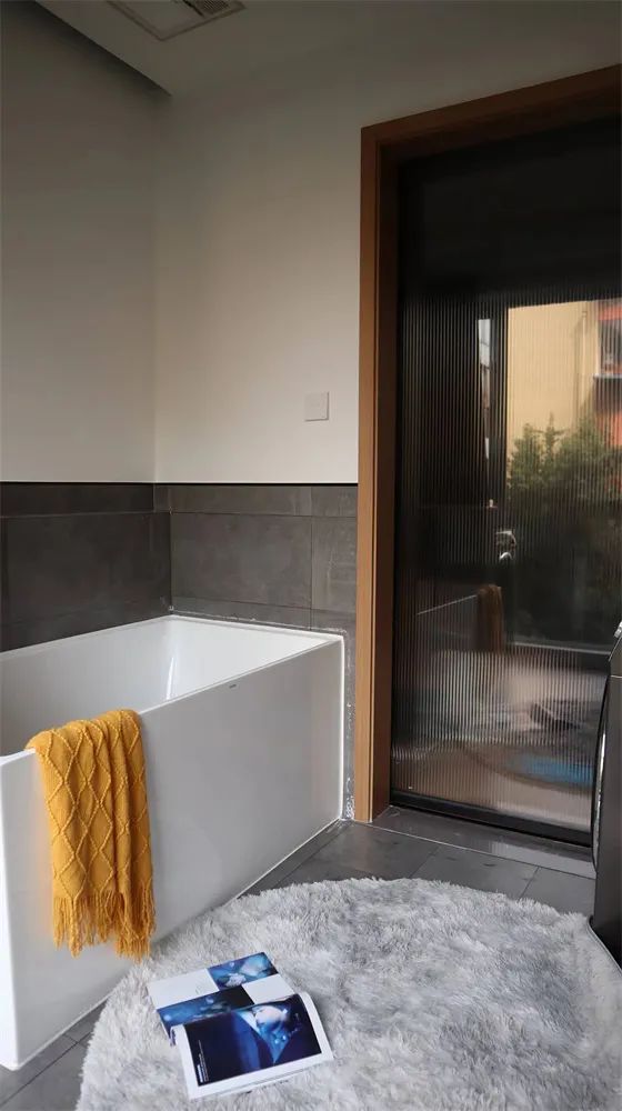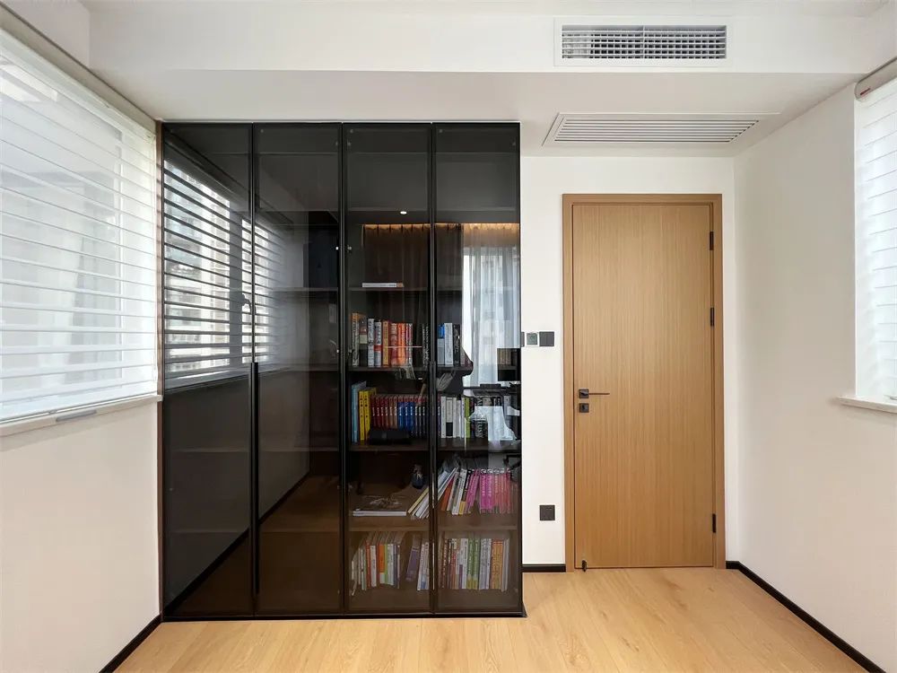 內設一個實木衣柜,以琉璃玻璃門為隔斷的衣帽間,呈現一個質感系空間,體現主人的對于生活品質的要求。