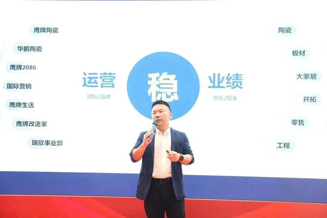 集團總裁陳賢偉以“拐角處的春天”作為演講主題,講述陶瓷行業面臨的巨大挑戰,無數企業遭遇困境,但依然有眾多企業成績亮眼,鷹牌成為了那耀眼星群中閃亮的一顆。鷹牌全體同仁在董事長吳啟超的帶領下,凝心聚力,化危機為商機,在逆境中強勢崛起,交出了一份出色的答卷!