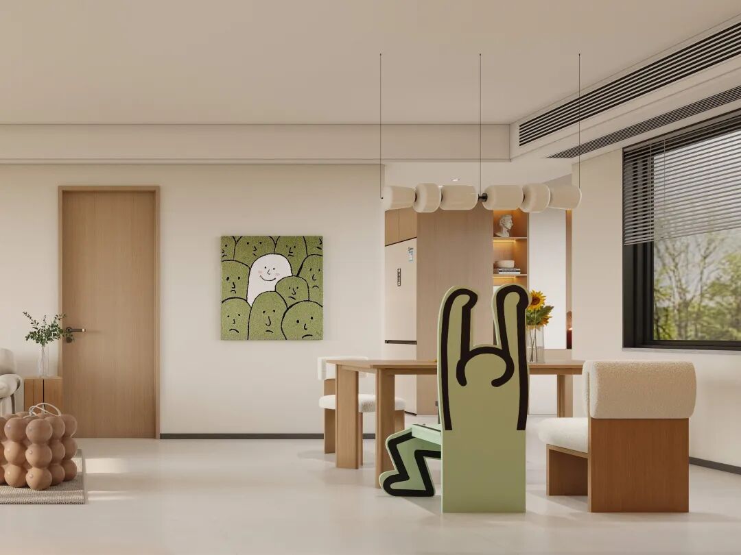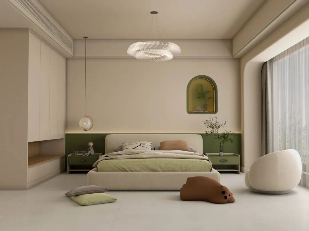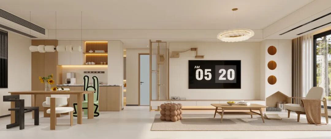 家居奶油風(fēng)以淺暖色調(diào)為主,如奶白、淺杏,搭配暖調(diào)的綠色系點(diǎn)綴。拒絕冷硬棱角。搭配軟糯軟裝與柔和光影,整體像裹著軟乎乎的質(zhì)感,不張揚(yáng)卻滿是治愈感,讓家顯松弛又溫馨。