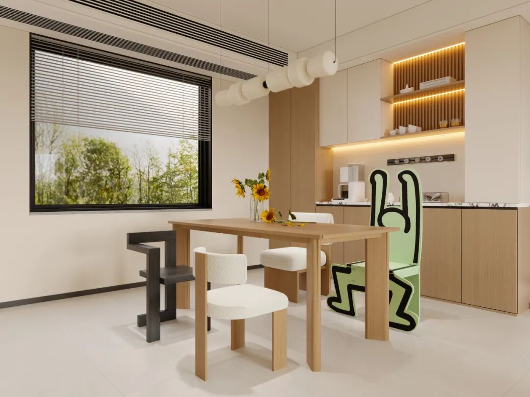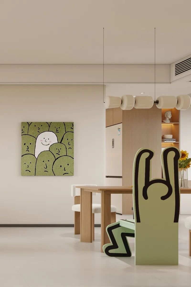 瓷磚細(xì)膩紋理在暖光下如奶油蛋糕紋路,搭配奶油色餐邊柜與淺木餐桌,為用餐空間添浪漫。即便擺滿餐具也不顯雜亂,餐后油污易清潔,不破壞奶油風(fēng)氛圍。