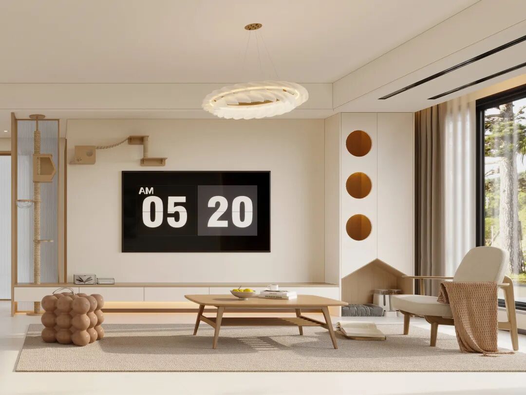 Creamy tiles pair well with soft sofas and light furniture. Natural light reflects gently, creating a cozy, tidy space.